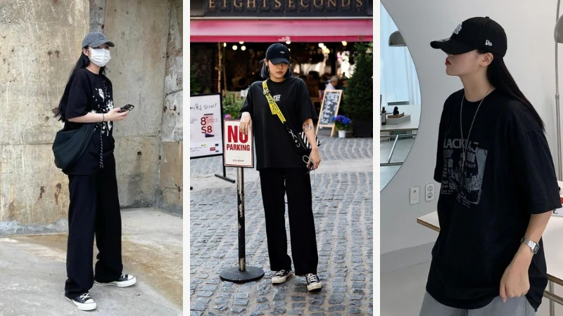 - Với áo phông và quần short: Tạo vẻ năng động, trẻ trung.